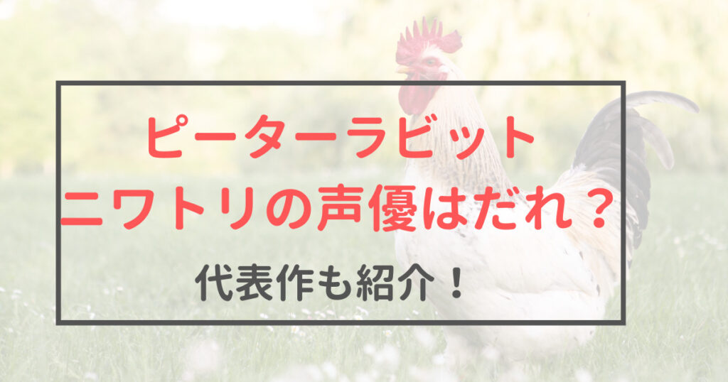 映画『ピーターラビット』でニワトリの吹き替え声優はだれが担当しているかを紹介します。 「この声聞き覚えがある!」という方は、代表作も伝えするのでご覧くださいね♪ 『北斗の拳』のあの声で有名な声優さんです( *´艸`) ちなみに、ニワトリの声優は、... -